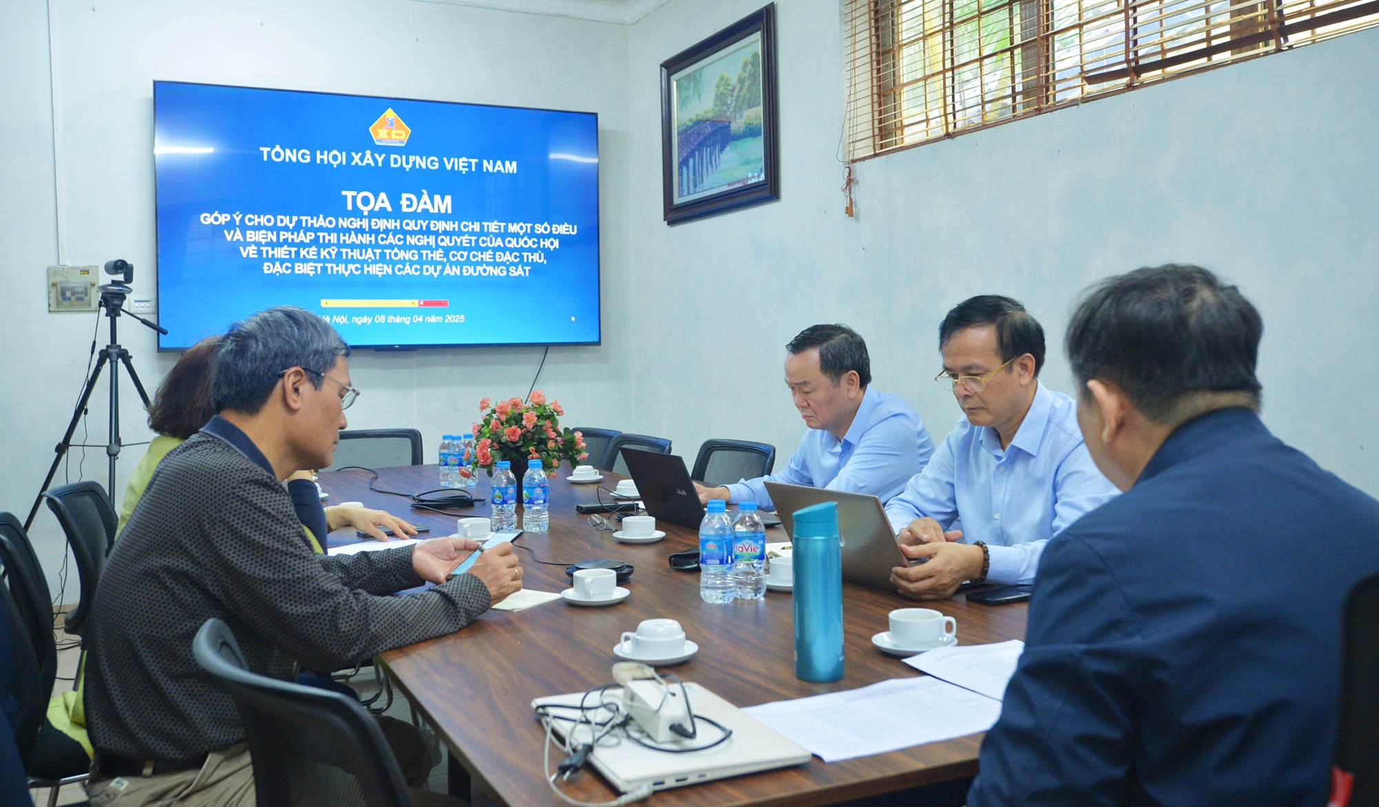 Sáng ngày 8/4, tại Hà Nội, đã diễn ra Tọa đàm góp ý cho dự thảo Nghị định quy định chi tiết một số điều và biện pháp thi hành các Nghị quyết của Quốc hội về thiết kế kỹ thuật tổng thể, cơ chế đặc thù, đặc biệt thực hiện các dự án đường sắt. Toạ đàm do Tổng hội Xây dựng Việt Nam tổ chức với sự tham dự đông đảo của các chuyên gia, nhà khoa học. Tọa đàm được tổ chức theo hình thức trực tiếp và trực tuyến với các điểm cầu tại TP.HCM, Lâm Đồng, Hải Phòng.
