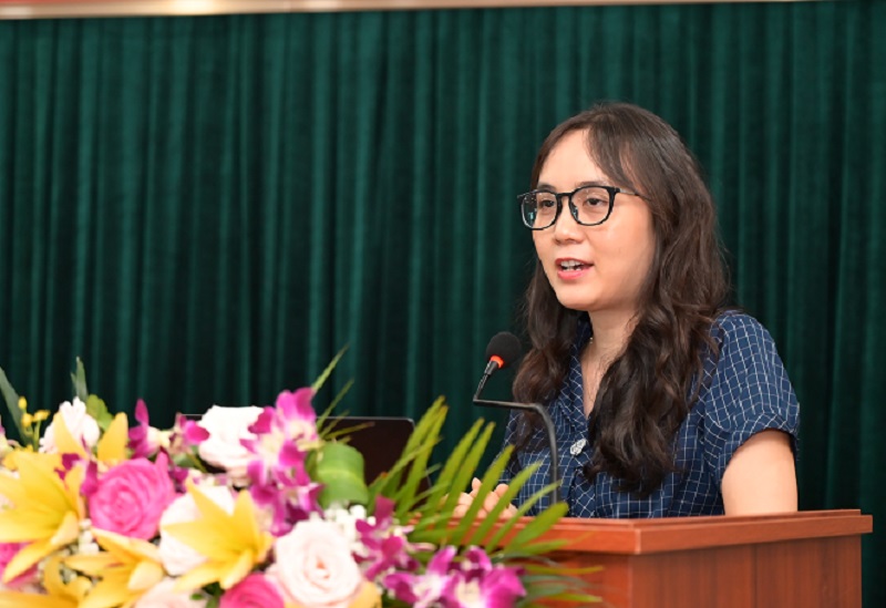 TS.KTS. Lê Thị Bích Thuận - Phó Viện trưởng Viện Nghiên cứu Đô thị và Phát triển hạ tầng trình bày tham luận Thực trạng công tác cải tạo chung cư cũ tại các đô thị lớn của Việt Nam - Đề xuất giải pháp hoàn thiện chính sách cải tạo chung cư cũ trong hoạt động cải tạo đô thị.