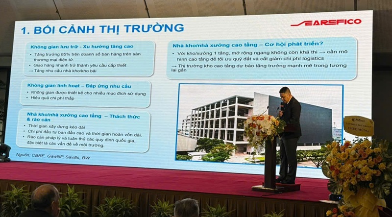 Theo TGĐ Công ty CP Searefico, đến nay mô hình nhà kho, nhà xưởng 1 tầng đã lỗi thời và không còn khả thi đòi hỏi mô hình nhà kho, nhà xưởng cao tầng để tối ưu quỹ đất và cắt giảm chi phí logistics. Đồng thời dự báo thị trường nhà kho, nhà xưởng cao tầng sẽ là nhu cầu tương lai và có thể tăng trưởng rất mạnh mẽ với những ưu điểm như: Không gian được thiết kế cho nhiều mục đích sử dụng, hiệu quả cao, chi phí thấp, được nhiều nước trên thế giới áp dụng.