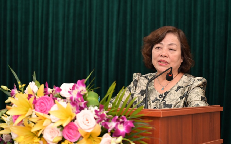 TS.KTS. Lê Thị Bích Thuận - Phó Viện trưởng Viện Nghiên cứu Đô thị và Phát triển hạ tầng trình bày tham luận Thực trạng công tác cải tạo chung cư cũ tại các đô thị lớn của Việt Nam - Đề xuất giải pháp hoàn thiện chính sách cải tạo chung cư cũ trong hoạt động cải tạo đô thị.
