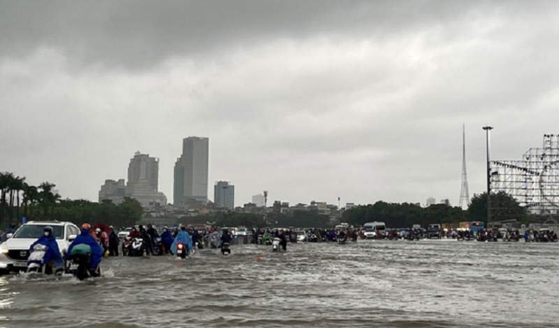 Nhiều tuyến đường TP Hà Nội ngập lụt trong cơn bão số 11.
