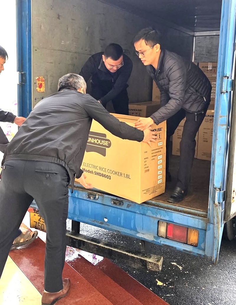 Hàng trăm phần quà được chuyển đến Thái Nguyên.