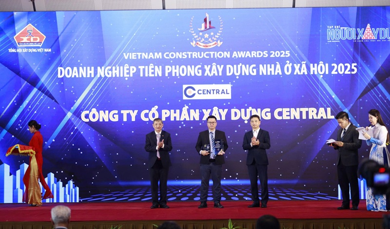 Đại diện CENTRAL nhận kỷ niệm chương vinh danh tại hạng mục doanh nghiệp tiên phong xây dựng nhà ở xã hội 2025.